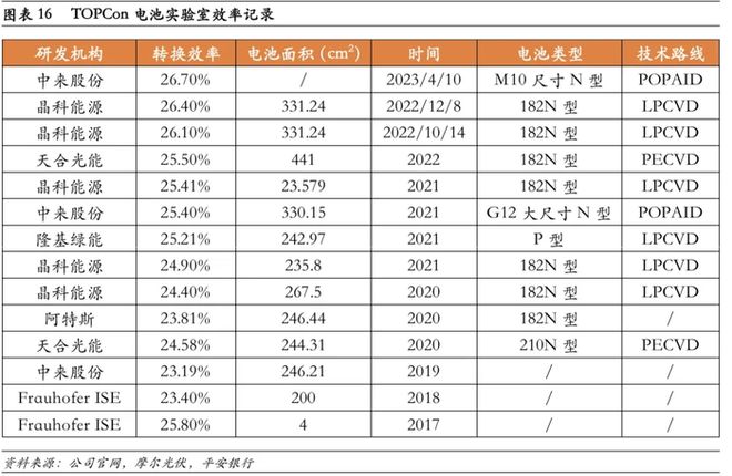 考虑到目前TOPCon技术仍处于产业化初期,预计达到成熟期(光伏电池产品出现明显同质化趋势)仍需1-2年时间;在此期间,优势企业有望在盈利及出货量上享受先发红利,同时伴随TOPCon技术持续提效升级,这种领先优势有可能长期存在。