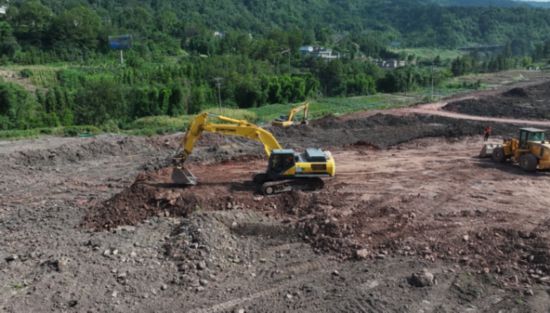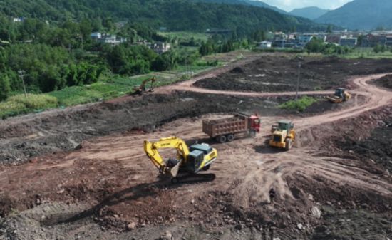 近日,雨城区八步镇枫木村巨星农牧有限公司饲料厂项目现场,早已是一派热火朝天的建设景象。大型挖掘机挥舞着铁臂,将地表的杂物精准清运;渣土车往来穿梭,在划定区域有序倾倒土方;十几名工人分散在各个作业点,有的忙着校准场平测量仪,有的蹲在天然气管网接口处检查焊接质量,不远处的电力迁改工地,工人正踩着脚手架固定线缆,汗水顺着安全帽带滑落,却丝毫没放慢手中的动作。